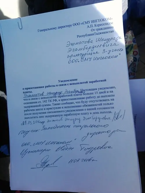 – Замдиректора СМУ «ИНГЕОКОМ» подписал и забрал все уведомления о прекращении работы. В соответствии с законом мы имеем право уведомить руководство о приостановке деятельности. Замдиректора рассказал нам, что компания испытывает финансовые сложности. Но нас это не должно волновать, потому что люди работают каждый день в тяжёлых условиях по 12 часов, что является нарушением трудового законодательства и условий договора. Наши законные требования – получать за тяжёлый, добросовестный и очень важный для москвичей труд заработную плату, – прокомментировал результат переговоров Ренат Каримов.