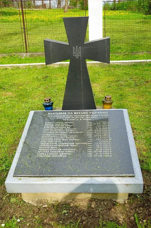 Украинские националисты установили две мемориальные плиты с надписями «Борцам за свободу Украины» и поименным списком «героев», погибших 7 января 1946 года в селе Бирча и 22 мая 1947года в селе Лишня. (При этом, кроме имени и фамилии, на мраморе были выбиты романтические клички бандеровцев – «Крутий», «Сливка», «Лiсковый», «Ягода» и прочее – Прим. ред.).