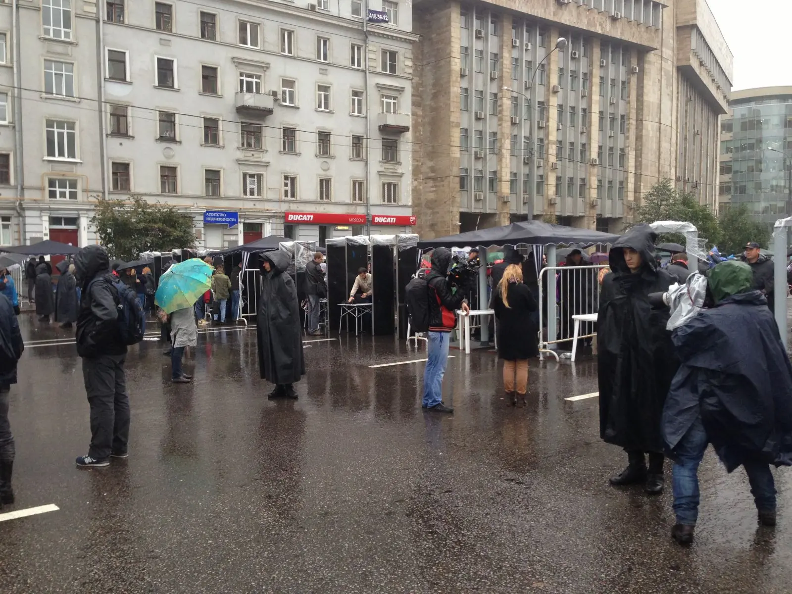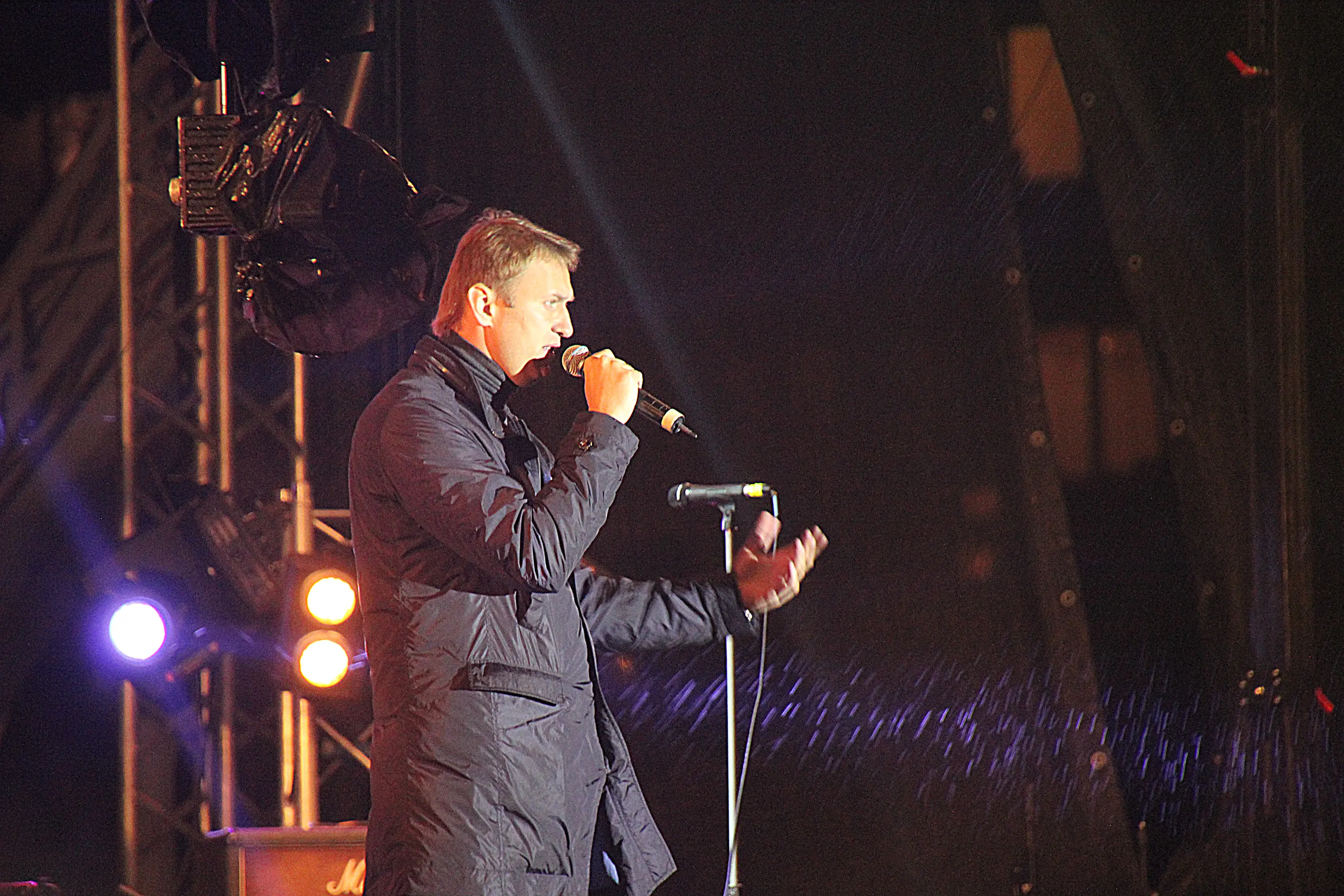 «Никаких пока речей. Я здесь, чтобы вы меня увидели, чтобы сказать - я здесь, вместе с вами. Спасибо вам огромное, на таких людях как вы всё и держится: на тех, кто приходит первыми, кто приходит вовремя и кто терпеливо стоит под дождем. Я надеюсь, что сейчас вы не только стоите терпеливо, но насладитесь отличной музыкой. Вы огромные молодцы, я вас всех люблю. Если бы у меня были огромные руки, я бы вас всех обнял», — сказал Навлаьный.