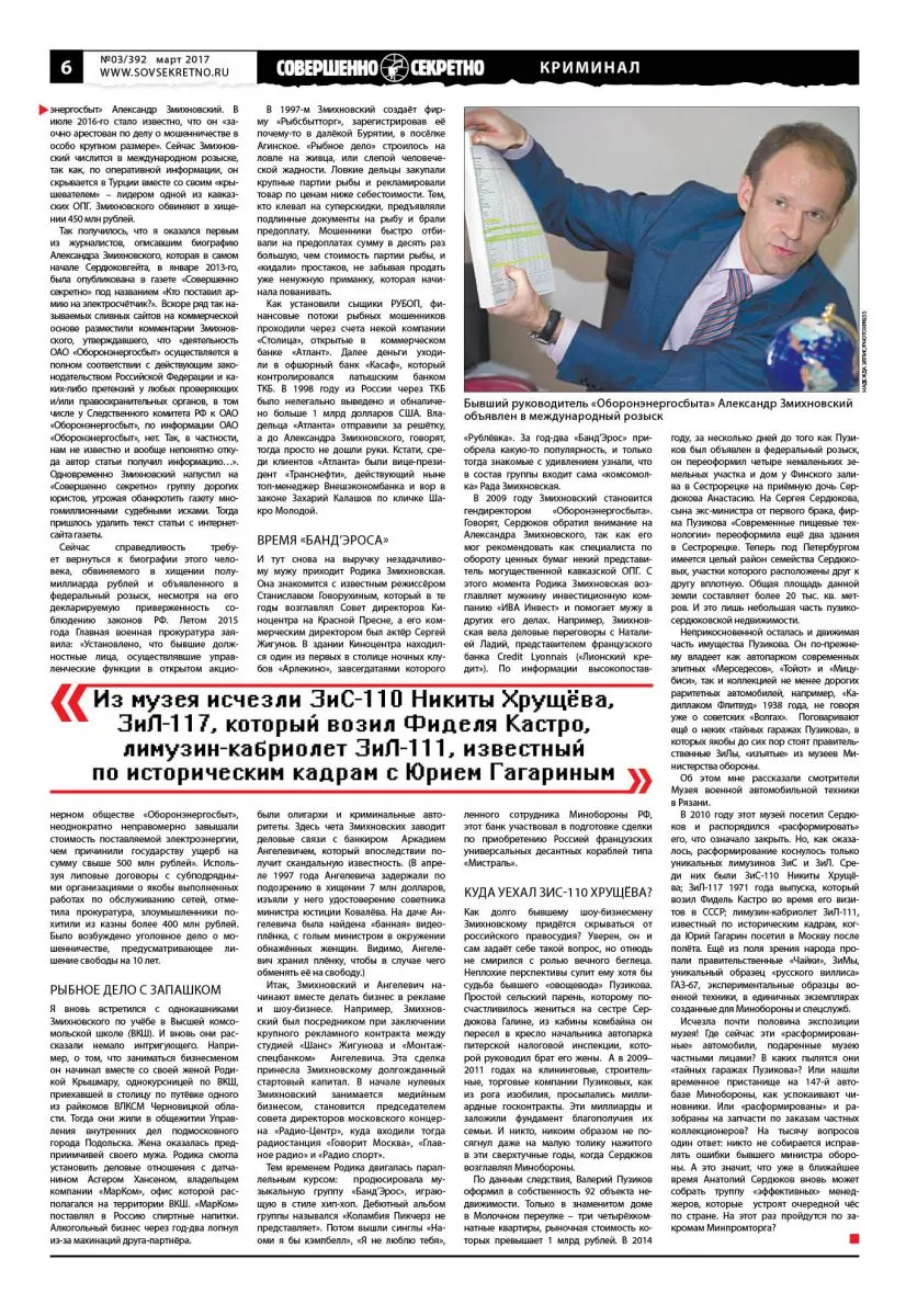 Так получилось, что я оказался первым из журналистов, описавшим биографию Александра Змихновского, которая в самом начале Сердюковгейта, в январе 2013-го, была опубликована в газете «Совершенно секретно» под названием «Кто поставил армию на электросчётчик?». Вскоре ряд так называемых сливных сайтов на коммерческой основе разместили комментарии Змихновского, утверждавшего, что «деятельность ОАО «Оборонэнергосбыт» осуществляется в полном соответствии с действующим законодательством Российской Федерации и каких-либо претензий у любых проверяющих и/или правоохранительных органов, в том числе у Следственного комитета РФ к ОАО «Оборонэнергосбыт», по информации ОАО «Оборонэнергосбыт», нет. Так, в частности, нам не известно и вообще непонятно откуда автор статьи получил информацию…». Одновременно Змихновский напустил на «Совершенно секретно» группу дорогих юристов, угрожая обанкротить газету многомиллионными судебными исками. Тогда пришлось удалить текст статьи с интернет-сайта газеты.