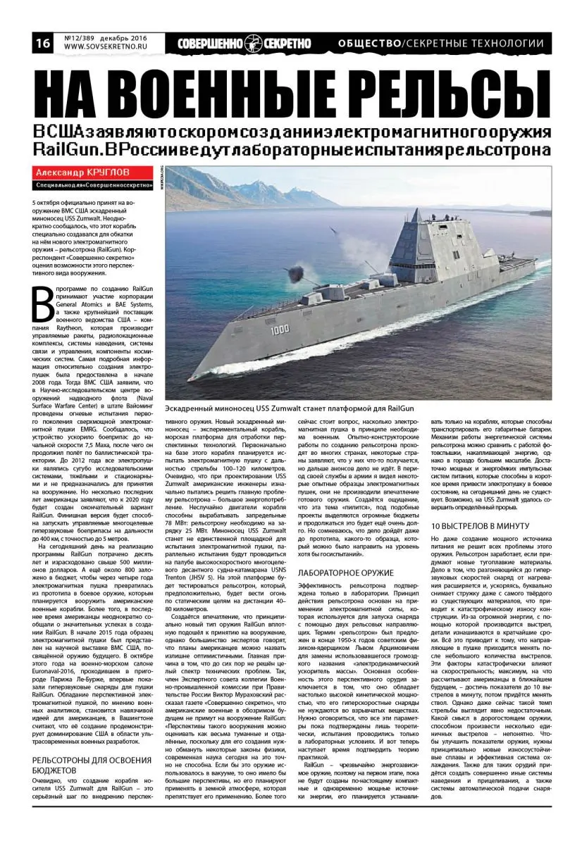 На сегодняшний день на реализацию программы RailGun потрачено десять лет и израсходовано свыше 500 миллионов долларов. А ещё около 800 заложено в бюджет, чтобы через четыре года электромагнитная пушка превратилась из прототипа в боевое оружие, которым планируется вооружить американские военные корабли. Более того, в последнее время американцы неоднократно сообщали о значительных успехах в создании RailGun. В начале 2015 года образец электромагнитной пушки был представлен на научной выставке ВМС США, посвящённой оружию будущего. В октябре этого года на военно-морском салоне Euronaval-2016, проходившем в пригороде Парижа Ле-Бурже, впервые показали гиперзвуковые снаряды для пушки RailGun. Обладание перспективной электромагнитной пушкой, по мнению военных аналитиков, становится навязчивой идеей для американцев, в Вашингтоне считают, что её создание продемонстрирует доминирование США в области ультрасовременных военных разработок.