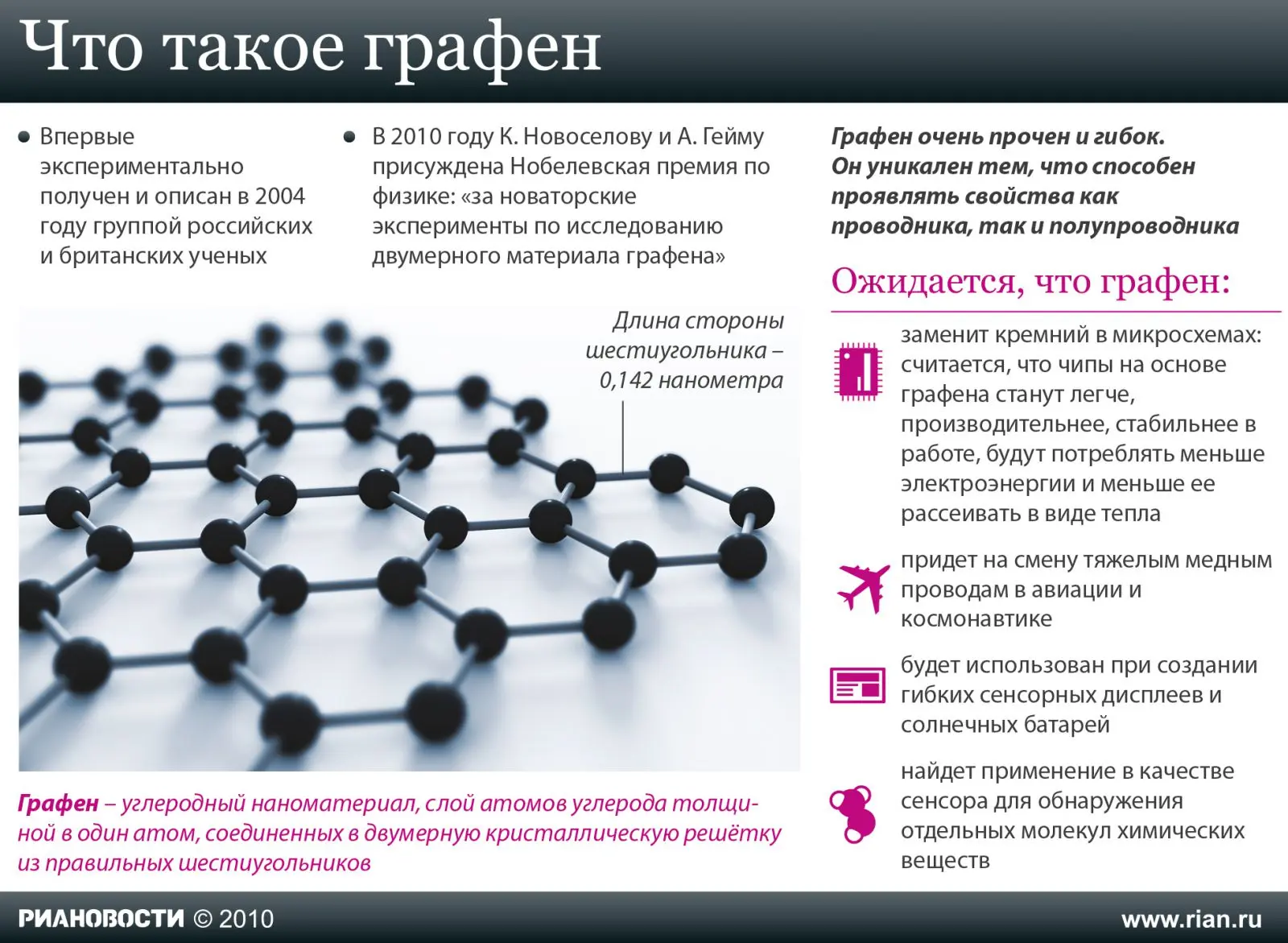 «Как известно, графен был экспериментально обнаружен в 2004 году учёными русского происхождения Андреем Геймом и Константином Новосёловым, за что они получили Нобелевскую премию. У графена как у потенциального полупроводникового материала есть много преимуществ.