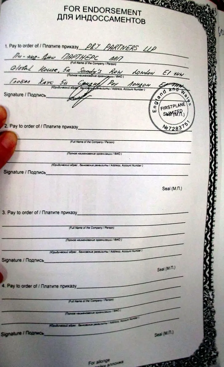 Дело в том, что для выдачи векселя у ООО «Эр-Стайл» не было оснований. Принимая вексель от банкрота, векселедержатель, надо полагать, был в своём уме. Следовательно, возникает вопрос о добросовестности векселедержателя. Не случайно изначальный векселедержатель – офшорная компания «Ферст Плейн Лтд» – переуступил вексель компании «Пи энд Джей партнерс ЛЛПИ», а подпись (индоссамент) при этом оказалась нерасшифрованной. «Ферст Плейн Лтд» оказалась в этой схеме «прокладкой», это было нужно Васину и конкурсному управляющему, чтобы не расшифровывать детали выдачи векселя. Ведь эти данные тогда попали бы в материалы арбитражного суда, и юристы Рудникова могли их увидеть. Васин всё продумал чётко. Лицо же, совершившее операцию, явно не собиралось рисковать и оказываться фигурантом в деле о ложном банкротстве. Само по себе обстоятельство отсутствия расшифровки подписи, к чему обязывает российский закон, делает вексель как минимум сомнительным: невозможно проверить, обладало ли лицо, поставившее «закорючку» на документе, полномочиями, а скорее – недействительным. Обнаружить признаки лица и проверить его полномочия в арбитражном процессе не удалось. Что означает: законность сделки осталась под вопросом.