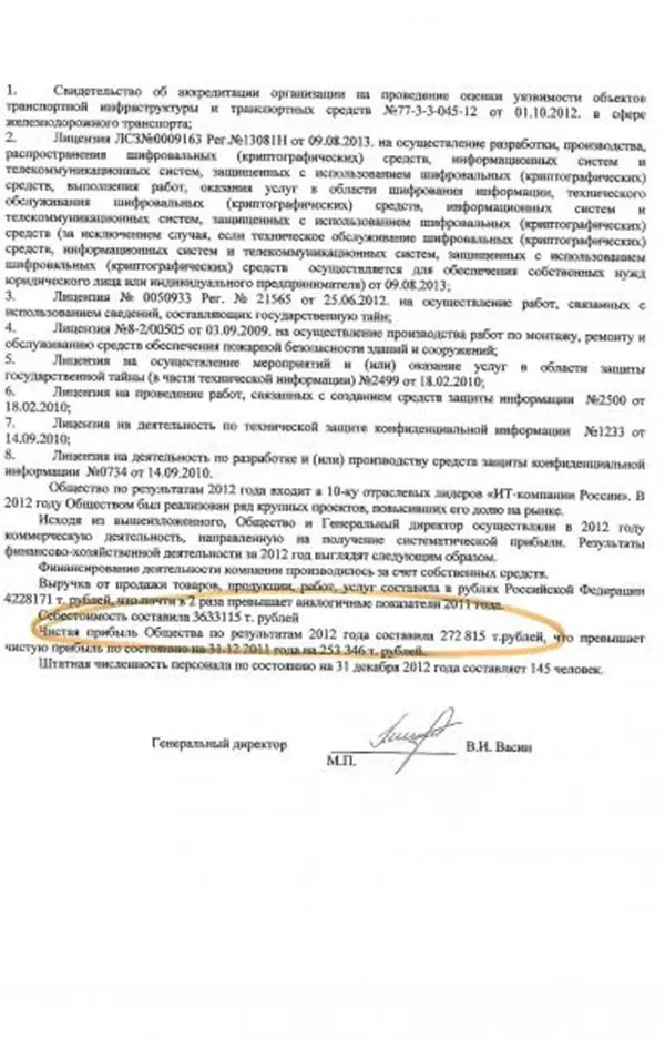 – 30 октября 2013 года Васиным В.И. представлены документы (годовой отчёт, бухгалтерский баланс), свидетельствующие об отличном финансовом состоянии ООО «Эр-Стайл» по итогам 2012 года, наличии прибыли в размере 272 миллионов рублей;