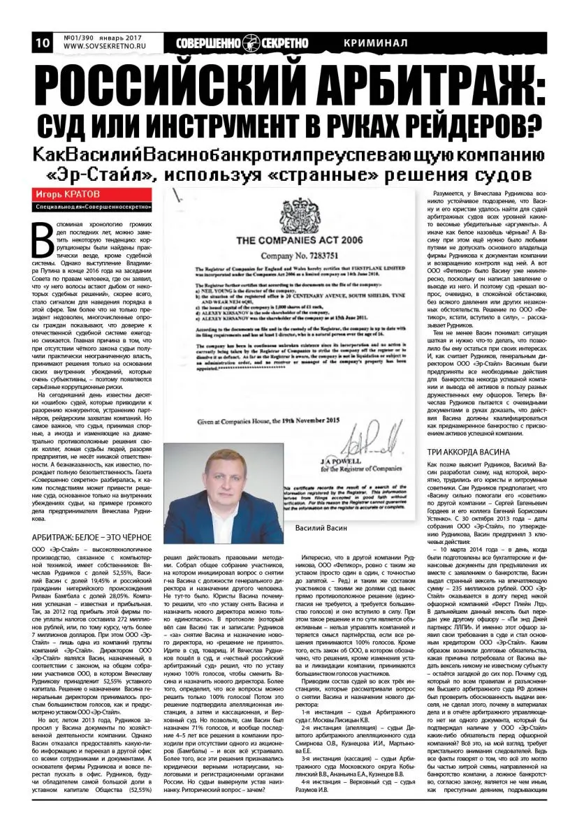 Тем не менее Васин понимал: ситуация шаткая и нужно что-то делать, что позволило бы ему остаться при своих интересах. И, как считает Рудников, генеральным директором ООО «Эр-Стайл» Васиным были предприняты все необходимые действия для банкротства некогда успешной компании и вывода её активов в пользу разных дружественных ему офшоров. Теперь Вячеслав Рудников пытается с очевидными документами в руках доказать, что действия Васина должны квалифицироваться как преднамеренное банкроство с присвоением активов успешной компании.