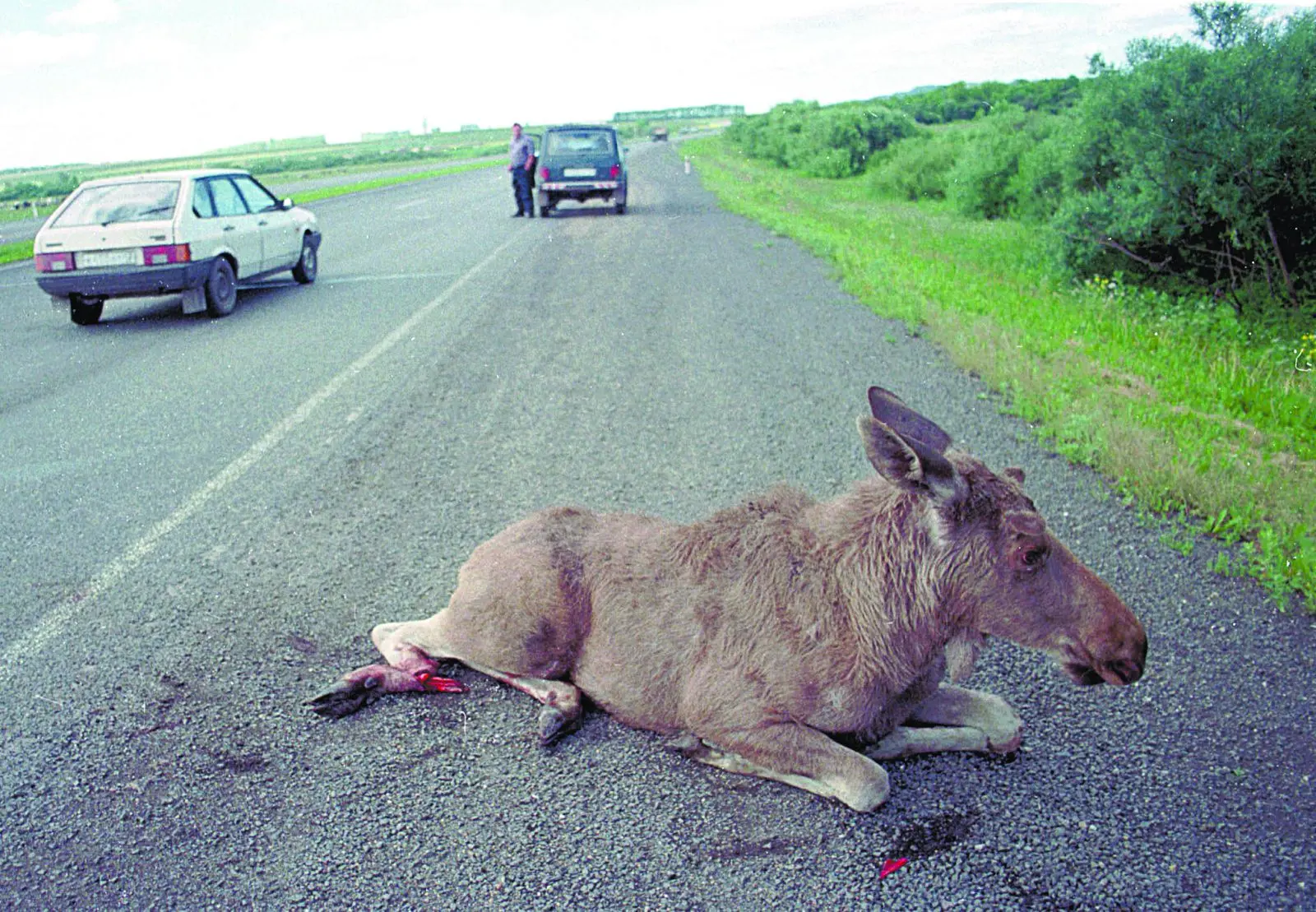 Почему на дороге в этом месте не было знаков? Местные жители говорят, что, хотя лосей на трассе очень много, на этом участке животных прежде действительно никогда не было. Но даже отсутствие знаков вовсе не освобождает от ответственности в случае аварии… водителей.