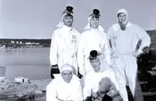 | Ликвидаторы аварии на береговой технической базе в губе Андреева. Крайний справа – Анатолий Сафонов | |