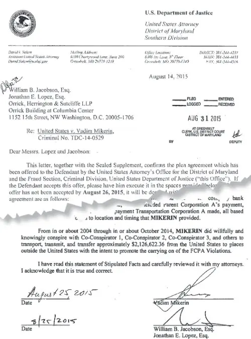 Спустя месяц такие же заявления подписали Дарен Кондри и Борис Рубижевский. Ещё через несколько дней на официальном сайте федерального суда штата Мэриленд появились документы, свидетельствующие о том, что перед арестом агенты ФБР пытались уговорить Вадима Микерина дать показания на неких «высокопоставленных чиновников в России». Чем увенчались эти попытки, так и осталось неизвестным: в разгар заседания, в ходе которого россиянин признал свою вину, судья Чуан неожиданно распорядился, чтобы посторонние покинули зал. В протоколе процесса отдельно отмечено, что «этот раздел остаётся засекреченным» и не подлежит разглашению.
