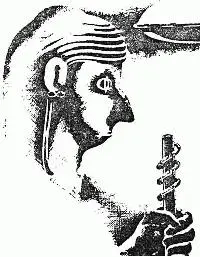 БАРНИ: «Глаза очень широко расставлены, и, казалось, их поле зрения значительно превышает наше... Я не заметил никаких признаков волос или головного убора. Я также не заметил носа; вместо него виднелась пара, по-видимому, ноздревых отверстий...»