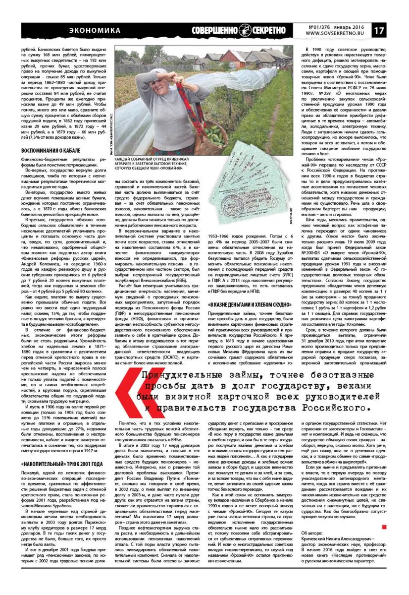 Как в этой связи не вспомнить заморозку вкладов населения в Сбербанке в начале 1990-х годов и не менее позорный эпизод с чеками «Урожай-90». Сегодня те казусы уже стали частью летописи страны, на справедливое исполнение государственных обязательств нынче мало кто рассчитывает, потому позволим себе абстрагироваться от субъективных ситуативных переживаний. И если о многострадальных советских вкладах писано-переписано, то случай под названием «Урожай-90» остался практически незамеченным.