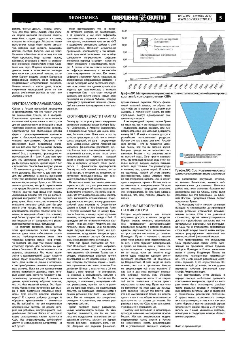 тически два-три года назад стал падать. Американцы поняли, что это не долгоиграющий инструмент. На переходный период нужно было что-то, что отвлекло бы внимание, заменило собой, хотя бы временно этот пузырь. По моему мнению, криптовалюта является отвлечением внимания на негодный объект. Это, конечно, ещё более пузыристый пузырь и ещё более оторванная от материального реального производства вещь, чем доллар.