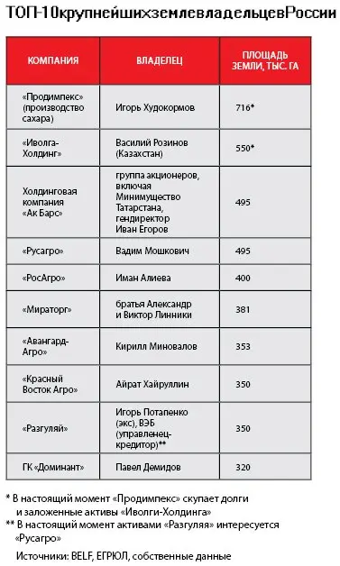 Газета «Совершенно секретно» составила 2 рейтинга: «ТОП-10 крупнейших землевладельцев России» и «ТОП-10 девелоперов с крупнейшим земельным банком в Московской области». Кто из них «недобросовестные владельцы сельхозземли» в 2016 году выяснит правительство.