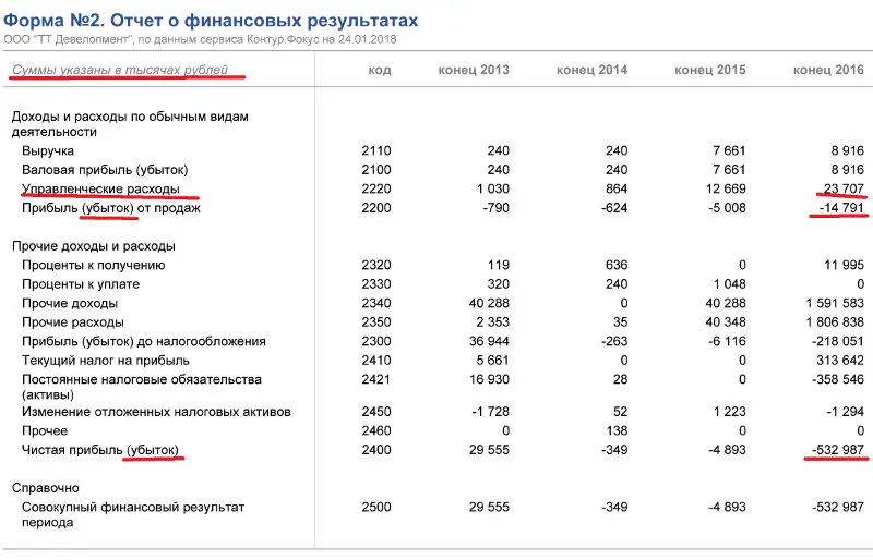 Впрочем, это всё равно не объясняет загадку – за что отец и сын Грудинины, верный заместитель Фёдоров и сын их давнего приятеля Свиридовского получили по полмиллиона долларов. Как может делать подарки строительная фирма, которая согласно данным базы «Контур. Фокус» закончила 2016 финансовый год с чистым убытком в 533 миллиона рублей? В базе об отчёте ООО «ТТ Девелопмент» так и написано – «отрицательные финансовые индикаторы».