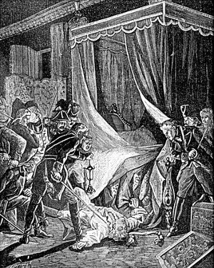 В ночь с 23 на 24 марта 1801 года (11–12 марта по ст. ст.) в петербургском Михайловском замке убили императора Павла I. Разумеется, официально до общественности довели, что государь император скончался «апоплексическим ударом». Но в высшем свете предпочитали с лёгкой улыбкой говорить про «апоплексический удар табакеркой». Явный отсыл к перевороту 1762 года, когда император Пётр III, низвергнутый своей супругой, вдруг скончался от «геморроидальных колик», хотя, как ухмылялись в том же высшем свете, причиной тех колик стала раскалённая кочерга, засунутая в задний проход низверженного самодержца бравыми гвардейцами. Здесь гвардейцы действовали не менее решительно: пьяной массой ворвались в спальню императора, набросились на него, Николай Зубов ударил Павла в левый висок кулаком, в котором была массивная золотая табакерка. На упавшего императора офицеры кинулись всей толпой: топтали ногами, били кулаками, эфесами шпаг, поставили на колени и задушили офицерским шарфом.