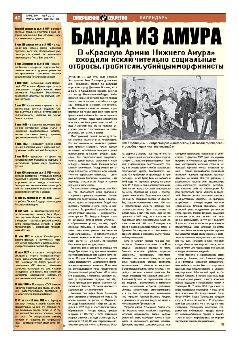 С 28 по 31 мая 1920 года красный партизан Яков Тряпицын дотла спалил Николаевск, второй по величине портовый город Дальнего Востока, входивший в Сахалинскую область. (Сейчас это город Николаевск-на-Амуре, Хабаровский край.) «Я оставлю вместо города лужи крови и пепла», – пообещал тогда сам Тряпицын. И не соврал. «Не осталось от Николаевска камня на камне», – рапортовал он позже. При всей жестокости Гражданской войны в России это единственный случай, когда целенаправленно и полностью был уничтожен целый город. А жители? Тех, кто не пожелал отступить вместе с партизанами, истребили, остальных насильно увели.