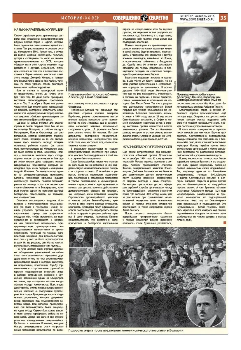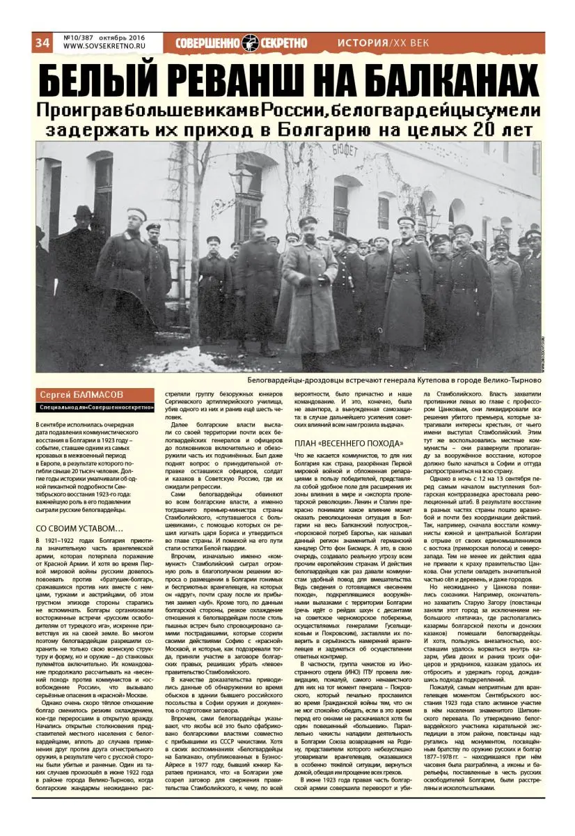 В сентябре исполнилась очередная дата подавления коммунистического восстания в Болгарии в 1923 году – событие, ставшее одним из самых кровавых в межвоенный период в Европе, в результате которого погибли свыше 20 тысяч человек. Долгие годы историки умалчивали об одной пикантной подробности Сентябрьского восстания 1923-го года: важнейшую роль в его подавлении сыграли русские белогвардейцы.