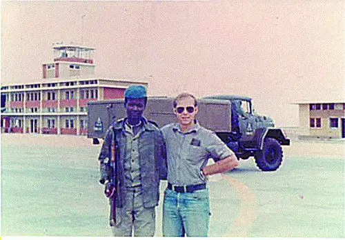 Ангола, город Намиб, аэропорт им. Юрия Гагарина. Справа – автор. 1977