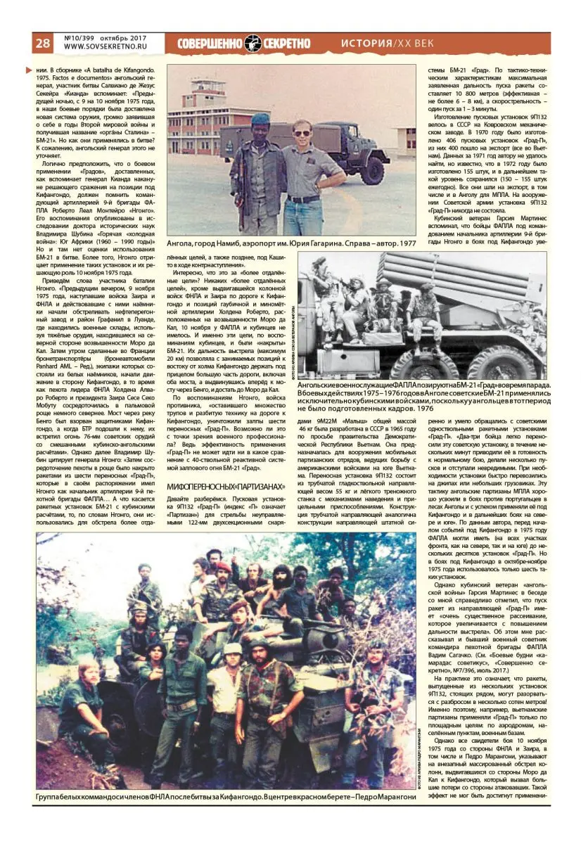 Газета «Совершенно секретно» публикует одну из глав книги Сергея Коломнина «Русский след под Кифангондо» с незначительными сокращениями и с пояснениями, которые по нашей просьбе дополнительно сделал автор. Не забудем, что Сергей Коломнин – военный переводчик и полковник ВВС в отставке, поэтому он так подробно, в деталях разбирает один из главных эпизодов гражданской войны в Анголе: почему ангольцы «забыли» о ключевом участии советских «Градов» в битве при Кифангондо? Любители переписывать официальную историю есть везде, в том числе и в Африке.