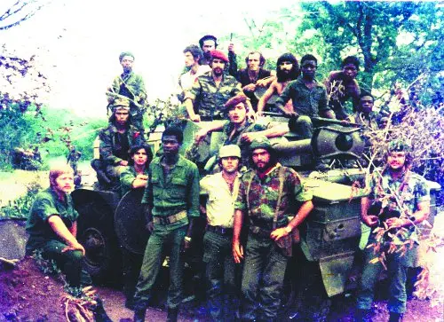 Группа белых коммандос и членов ФНЛА после битвы за Кифангондо. В центре в красном берете – Педро Марангони