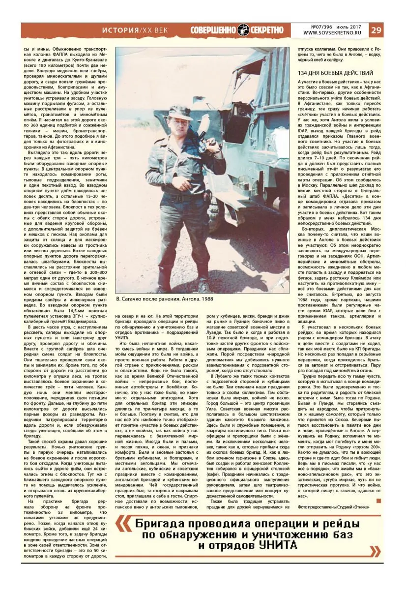 Сагачко Вадим Андреевич, полковник в отставке. В 1988–1990 годах выполнял интернациональный долг в Народной Республике Ангола. Был военным советником командира пехотной бригады ФАПЛА (Народные вооружённые силы освобождения Анголы, порт. – FAPLA), старшим военным специалистом по боевому применению пехотных и танковых подразделений управления боевой подготовки штаба Южного фронта.