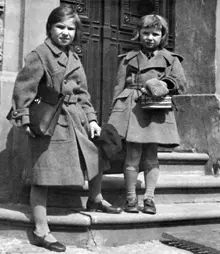 Внизу: Ольга в первый школьный день с сестрой Еленой (слева). 1932 год |