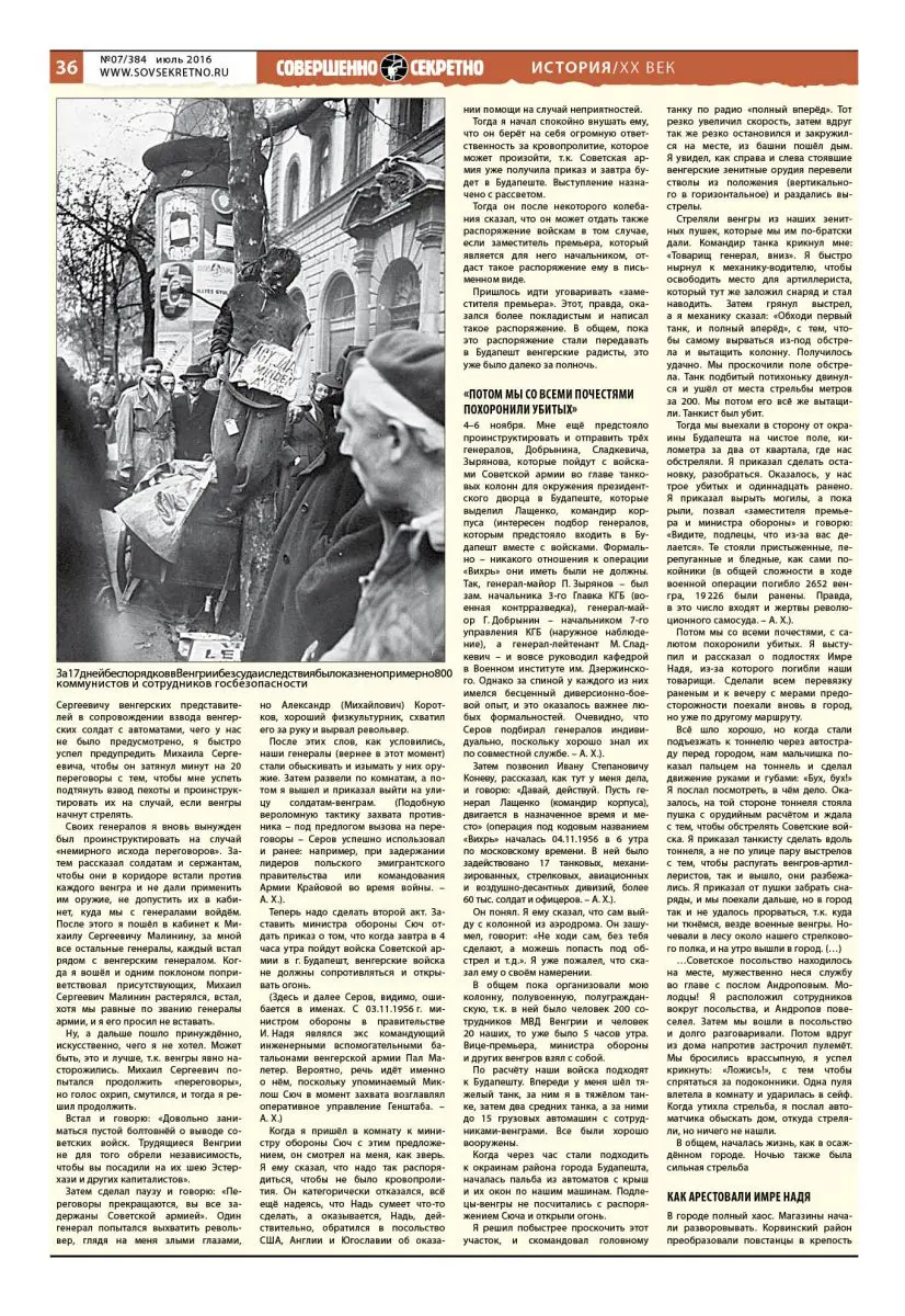 Я так и подпрыгнул, ведь это чистое предательство, без наших войск повстанцы возглавят Венгрию. Анастас Иванович, посоветовавшись с Сусловым, сказал: мы доложим ваше мнение в ЦК [КП] Советского Союза и вам завтра сообщим. Члены Политбюро и Герё по этому предложению Надя ничего внятного не сказали. Я так и не понял, согласны они с Надем или нет. На мой взгляд, получилась подлость.