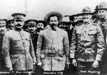Революционный генерал Франсиско Вилья (в центре) во время встречи с американским генералом Джоном Першингом (справа) в 1915 году. Слева – мексиканский генерал Альваро Обрегон |