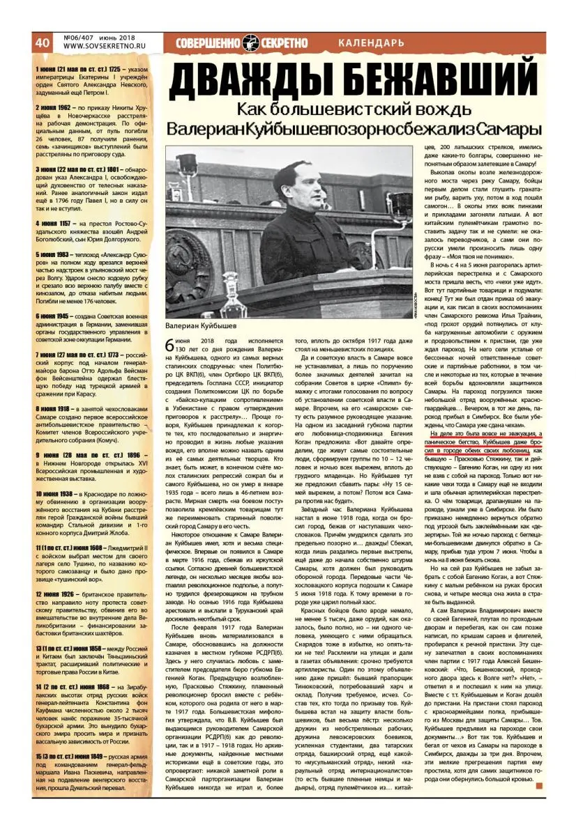 8 июня 1918 – в занятой чехословаками Самаре создано первое всероссийское антибольшевистское правительство – Комитет членов Всероссийского учредительного собрания (Комуч).