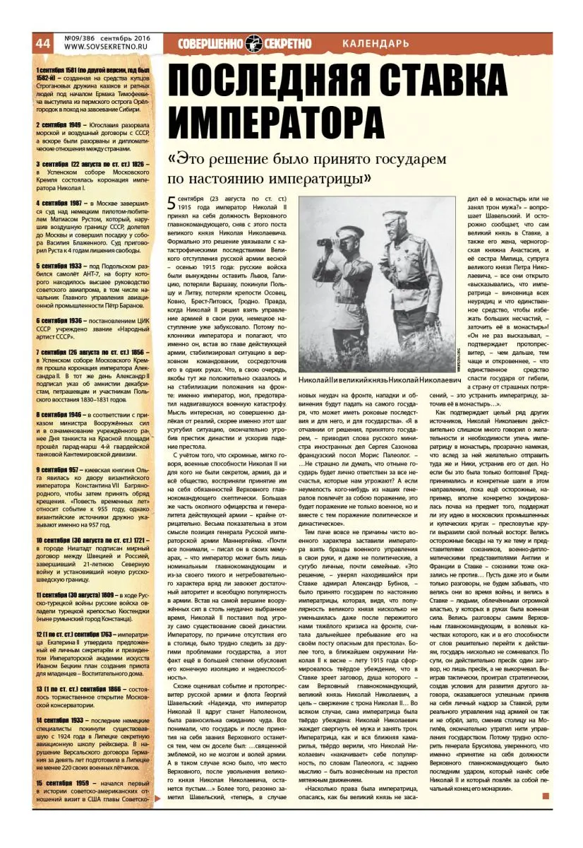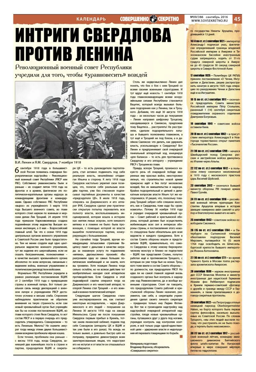 Исторический календарь 1-30 сентября