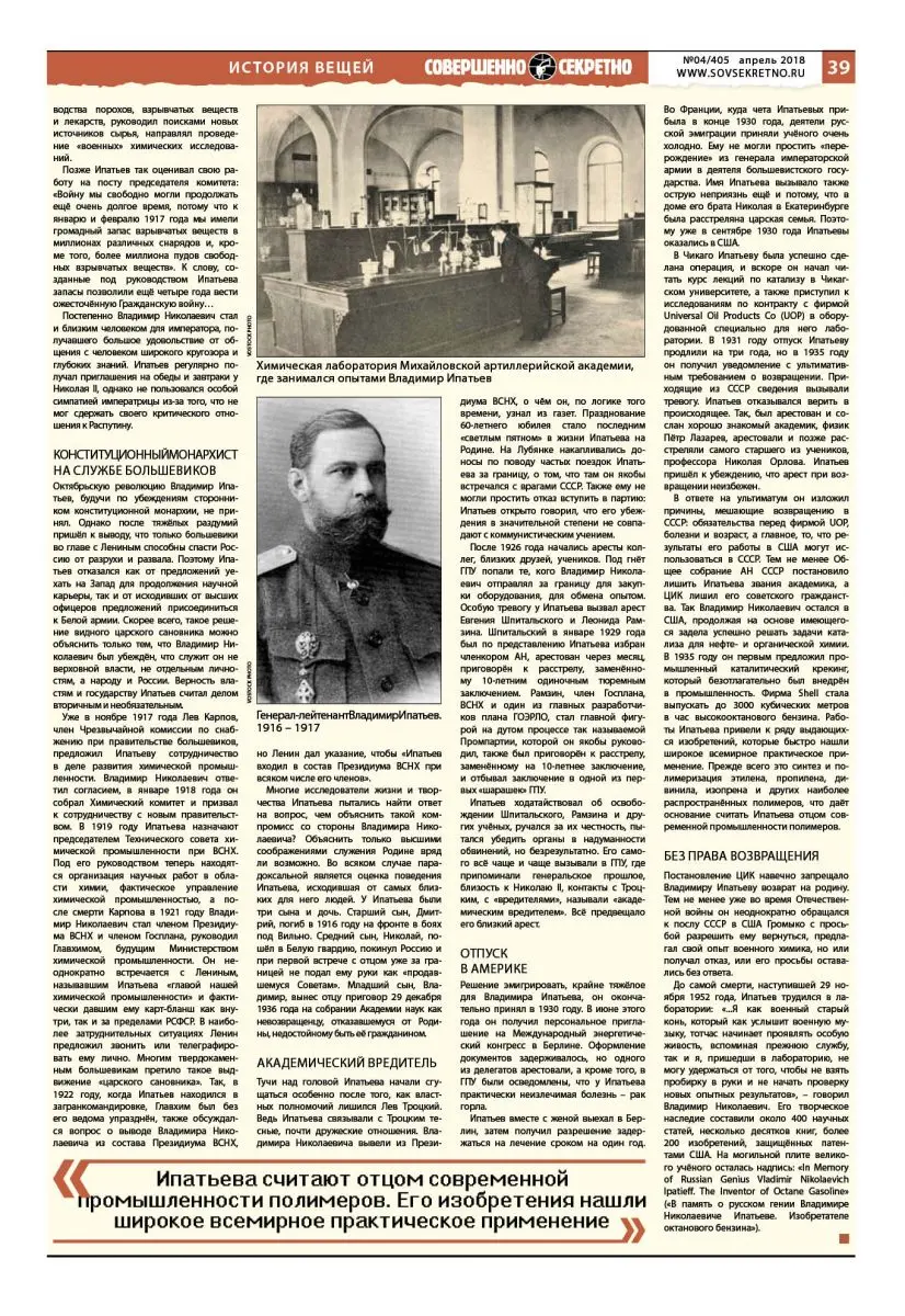 В США Владимира Ипатьева называли русским гением, а на родине его лишили гражданства и звания академика