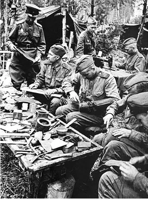 Правда, к этому времени проблема с обувью для армии была настолько серьёзной, что армейские ботинки начали получать по ленд-лизу. Всего в СССР было поставлено 15,5 млн пар армейских ботинок, но солдаты при первой возможности старались получить сапоги – в условиях бездорожья и окопной жизни только они давали хотя бы минимальный комфорт. К тому же надо учесть и то, что для ботинок требовались носки, а для сапог – портянки, идеальное «исподнее» для этого вида обуви. Поэтому, несмотря на то, что ботинки сыграли немалую роль в Победе, «нашими» были всё-таки кирзовые сапоги. Настолько, что фронтовые корреспонденты-фотографы имели чёткое указание – при съёмке солдат избегать того, чтобы в кадр попали обутые в ботинки.