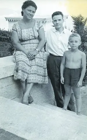 Маленький мальчик в очках справа от сестры-хозяйки и Алексея Сальникова – внук Хрущёва Алёша. Госдача в Пицунде. Начало 1960-х