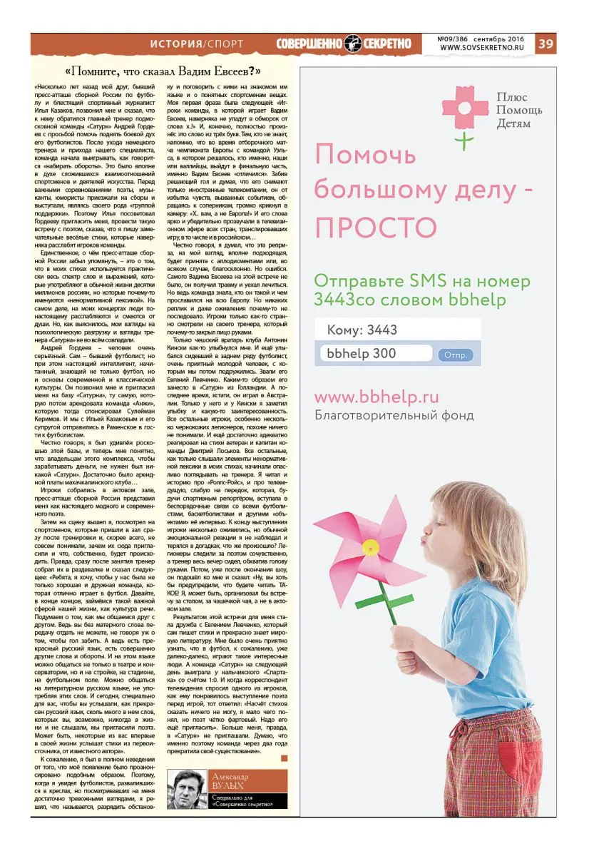 К сожалению, я был в полном неведении от того, что моё появление было проанонсировано подобным образом. Поэтому, когда я увидел футболистов, развалившихся в креслах, но посматривавших на меня достаточно тревожными взглядами, я решил, что называется, разрядить обстановку и поговорить с ними на знакомом им языке и о понятных спортсменам вещах. Моя первая фраза была следующей: «Игроки команды, в которой играет Вадим Евсеев, наверняка не упадут в обморок от слова х..!» И, конечно, полностью произнёс это слово из трёх букв. Тем, кто не знает, напомню, что во время отборочного матча чемпионата Европы с командой Уэльса, в котором решалось, кто именно, наши или валлийцы, выйдут в финальную часть, именно Вадим Евсеев «отличился». Забив решающий гол и думая, что его снимают только иностранные телекомпании, он от избытка чувств, вызванных событием, обращаясь к соперникам, громко крикнул в камеру: «Х.. вам, а не Европа!» И его слова ярко и убедительно прозвучали в телевизионном эфире всех стран, транслировавших игру, в то числе и в российском…