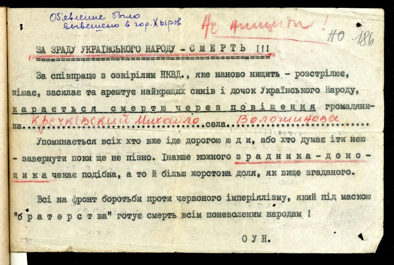 На фото: Объявление в городе Хырове – стандартная форма о казни, куда вписывается фамилия жертвы