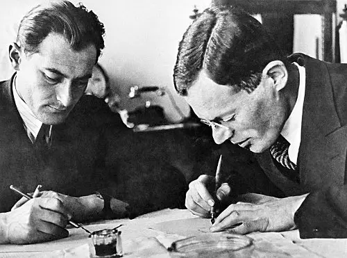 А советские газеты того времени писали: «21 мая 1935 г. выехала за границу группа творческих научно-технических работников советской кинематографии… О целях поездки т. Шумяцкий сообщил… следующее: главной нашей задачей является изучение новейших достижений зарубежной кинотехники. В частности изучение стадий работы в киноателье и обработки плёнки. Кроме того, мы будем изучать производство всех видов киноаппаратуры и кинооборудования, производимого в Европе и Америке. В Париже наша группа разделится на две комиссии. Одна из них во главе со мной в составе Эрмлера, Шорина и Нильсена выедет в Америку. Там мы пробудем три месяца. В Америке нам предстоят интереснейшие встречи с крупнейшими деятелями Голливуда».