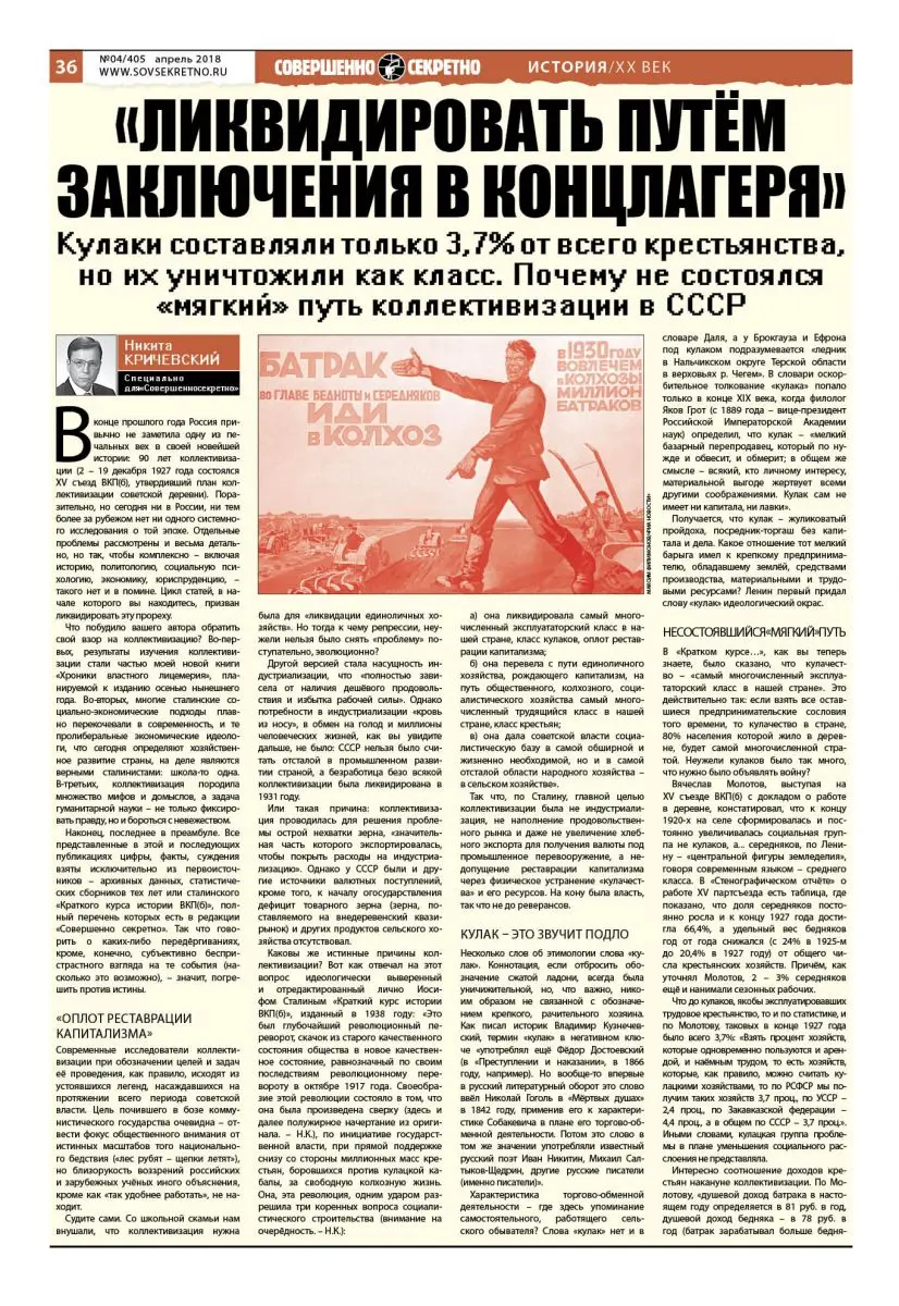 Что побудило вашего автора обратить свой взор на коллективизацию? Во-первых, результаты изучения коллективизации стали частью моей новой книги «Хроники властного лицемерия», планируемой к изданию осенью нынешнего года. Во-вторых, многие сталинские социально-экономические подходы плавно перекочевали в современность, и те пролиберальные экономические идеологи, что сегодня определяют хозяйственное развитие страны, на деле являются верными сталинистами: школа-то одна. В-третьих, коллективизация породила множество мифов и домыслов, а задача гуманитарной науки – не только фиксировать правду, но и бороться с невежеством.