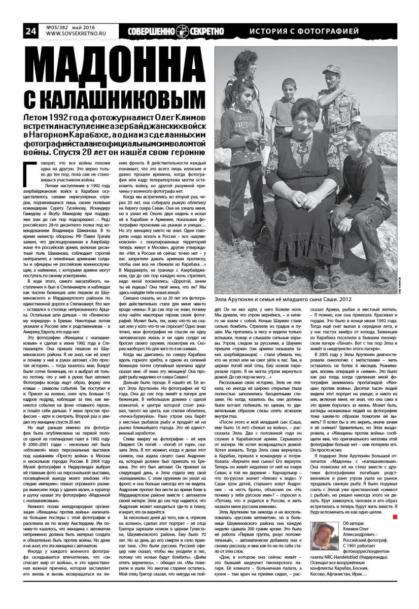 Летом 1992 года фотожурналист Олег Климов встретил наступление азербайджанских войск в Нагорном Карабахе, а одна из сделанных им фотографий стала неофициальным символом той войны. Спустя 20 лет он нашёл свою героиню