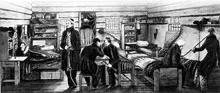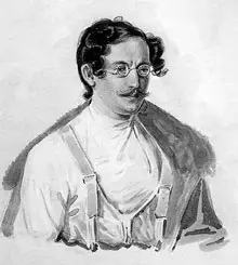 | Декабристы в камере Читинского острога (картина декабриста Н. Репина): слева Анненков полулежа читает книгу; за столом Никита Муравьев и Вадковский играют в шахматы. На кровати справа сидит Барятинский | |