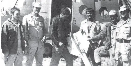 Советские вертолётчики возле неразорвавшейся иранской ракеты