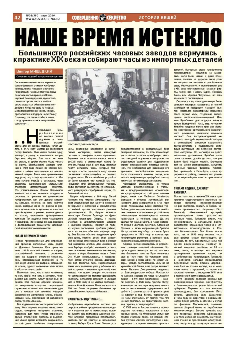 Первые механические часы религиозные фанатики считали изобретением дьявола. Недаром с началом Реформации часовые мастера предпочитали жить в границах Швейцарской Конфедерации, где господствовали протестанты и не было риска оказаться обвинённым в колдовстве. Когда же одну из первых моделей карманных часов, «яйцо», преподнесли в подарок царю Ивану Грозному, тот также отнёсся к ним с подозрением – как к чему-то «бесовскому»…