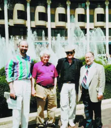 | В Вашингтоне с Ильёй Левиным (слева), Василием Аксёновым и Михайло Михайловым на фоне развлекательного комплекса «Уотерфронт», неподалёку от отеля «Уотергейт». Михайло Михайлов – известный югославский диссидент русского происхождения. С 1985 по 1994 год работал комментатором на радио «Свободная Европа», был одним из ведущих активистов международного движения емократической оппозиции. Илья Левин – специалист по творчеству обэриутов, в 80-е работал на «Голосе Америки». Позже был заместителем атташе по вопросам культуры посольства США в России | |