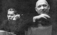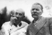 Горький и поэт Демьян Бедный на пленуме Союза писателей в 1935 году |