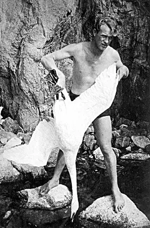 Остров Ольхон. Отстрел лебедя для проведения вскрытия аспирантом П. Бургасовым, 1938