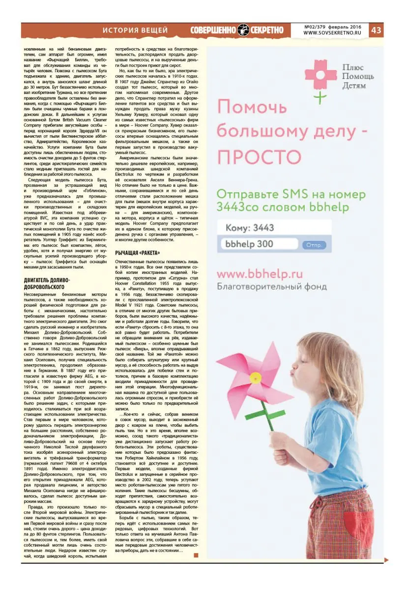 Правда, это произошло только после Второй мировой войны. Электрические пылесосы, выпускавшиеся во время Первой мировой войны и сразу после неё, стоили очень дорого – цена доходила до 80 фунтов стерлингов. Пользоваться пылесосом и, тем более, иметь свой собственный могли лишь очень состоятельные люди. Недаром известен случай, когда шведский король, испытывая потребность в средствах на благотворительность, распорядился продать дворцовые пылесосы, и на вырученные деньги был построен приют для сирот.