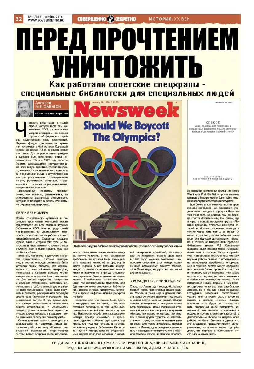 Единственное, что можно было брать в спецхране «не по теме», – это иностранная периодика, в том числе американские и английские газеты и журналы. Некоторые «особо злопыхательские» номера, правда, изымались и хранились отдельно в «более глубоком» спецхране. Кто туда мог попасть, я не знаю, но как-то увидел в библиотеке Института научной информации по общественным наукам молодого человека с короткой аккуратной причёской, читавшего один из январских номеров (дело было в 1980 году) журнала Newsweek. Нам, простым смертным, этот номер, посвящённый возможному бойкоту Московской Олимпиады, на руки ни под каким видом не давали…