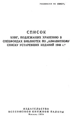 Передо мной лежит замечательная книга со скучным названием «Список книг, не подлежащих распространению в книготорговой сети». Это изданный в 1981 году библиографический указатель книг, которые в разное время начиная с 1949 года приказами Главлита изымались из магазинов. Естественно, на обложке есть гриф «Для служебного пользования» и номер конкретного экземпляра…