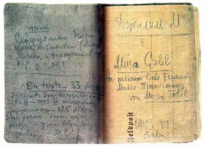 На последней страничке первого блокнота со стихами поэт написал: «К другу, который умеет читать по-татарски: это написал известный татарский поэт Муса Джалиль… Он в 1942 году сражался на фронте и взят в плен. …Его присудят к смертной казни. Он умрет. Но у него останется 115 стихов, написанных в плену и заточении. Он беспокоится за них. Поэтому если книжка попадет к вам в руки, аккуратно, внимательно перепиши их набело, сбереги и после войны сообщи в Казань, выпусти их в свет как стихи погибшего поэта татарского народа. Таково мое завещание. Муса Джалиль. 1943. Декабрь».