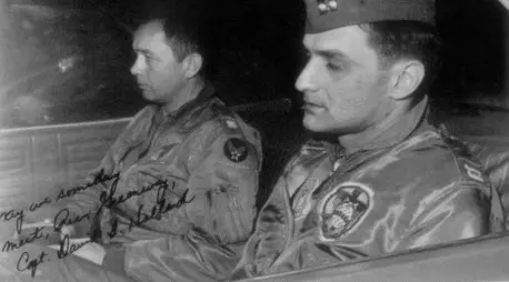 КАПИТАНОВ ХОЛЛАНДА (СЛЕВА) И КЕССЛЕРА ВЕЗУТ НА КПП ДЛЯ ПЕРЕДАЧИ. 27 МАРТА 1964 ГОДА