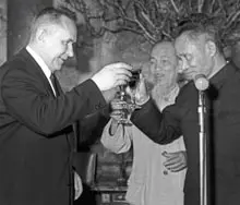– Эта рюмка была отлита по образцу тех, которые использовались во время официальных приёмов. Рассказывали, что её якобы подарила Хрущёву жена американского посла. Кто-то писал и о том, что рюмку изготовили в Германии. На самом деле это было изделие мастеров из Гусь-Хрустального. Мы всё время возили её с собой в «аптечке». Поскольку хрусталь был с резьбой, толстые стенки и дно практически не выделялись. А вмещалось в неё граммов тридцать.