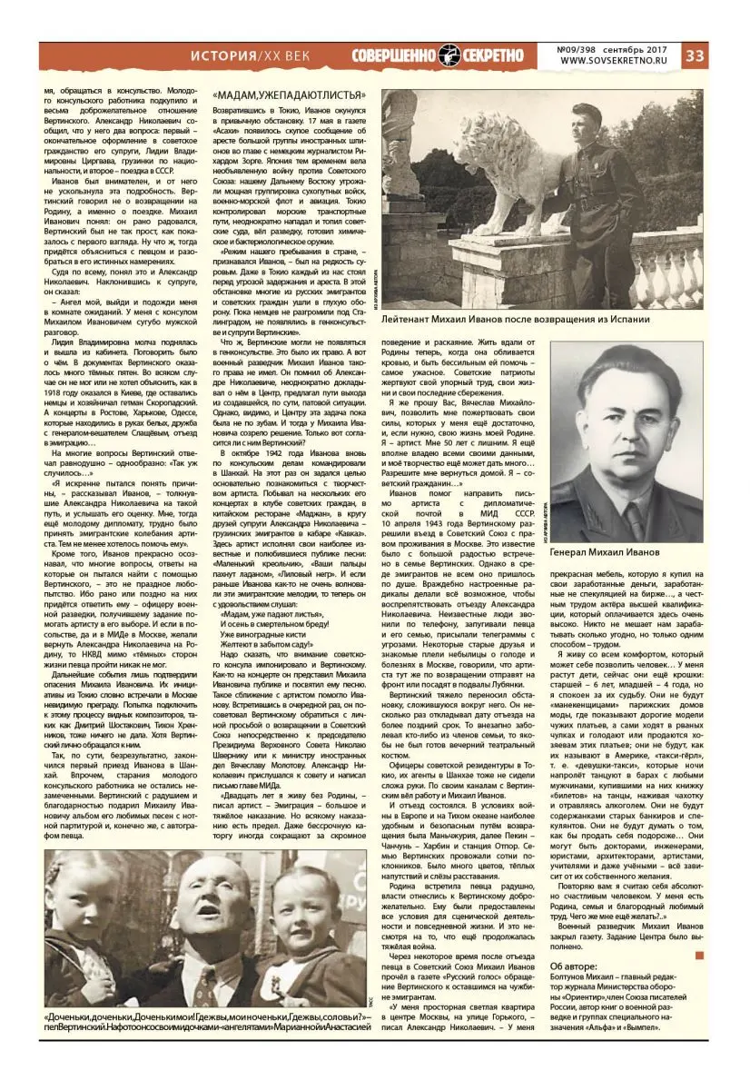 Офицеры советской резидентуры в Токио, их агенты в Шанхае тоже не сидели сложа руки. По своим каналам с Вертинским вёл работу и Михаил Иванов.